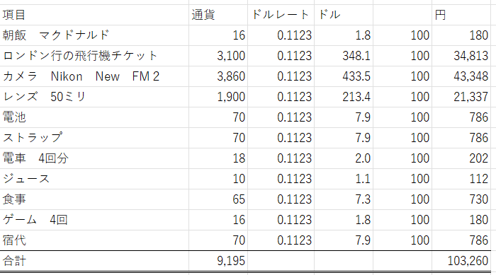 カメラとレンズで約6万円。さらにロンドン行きの航空券も買い、必要額は10万円を超えた。