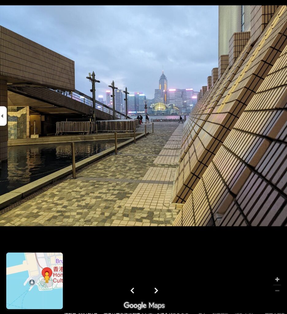 試しにGoogleマップで探索してみたら、似た写真が見つかり、「香港文化センター」だと判明した。