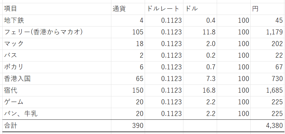 マカオでは、マカオパタカ(MOP)と、香港ドルが使えた。カジノでは中国元も使えた。